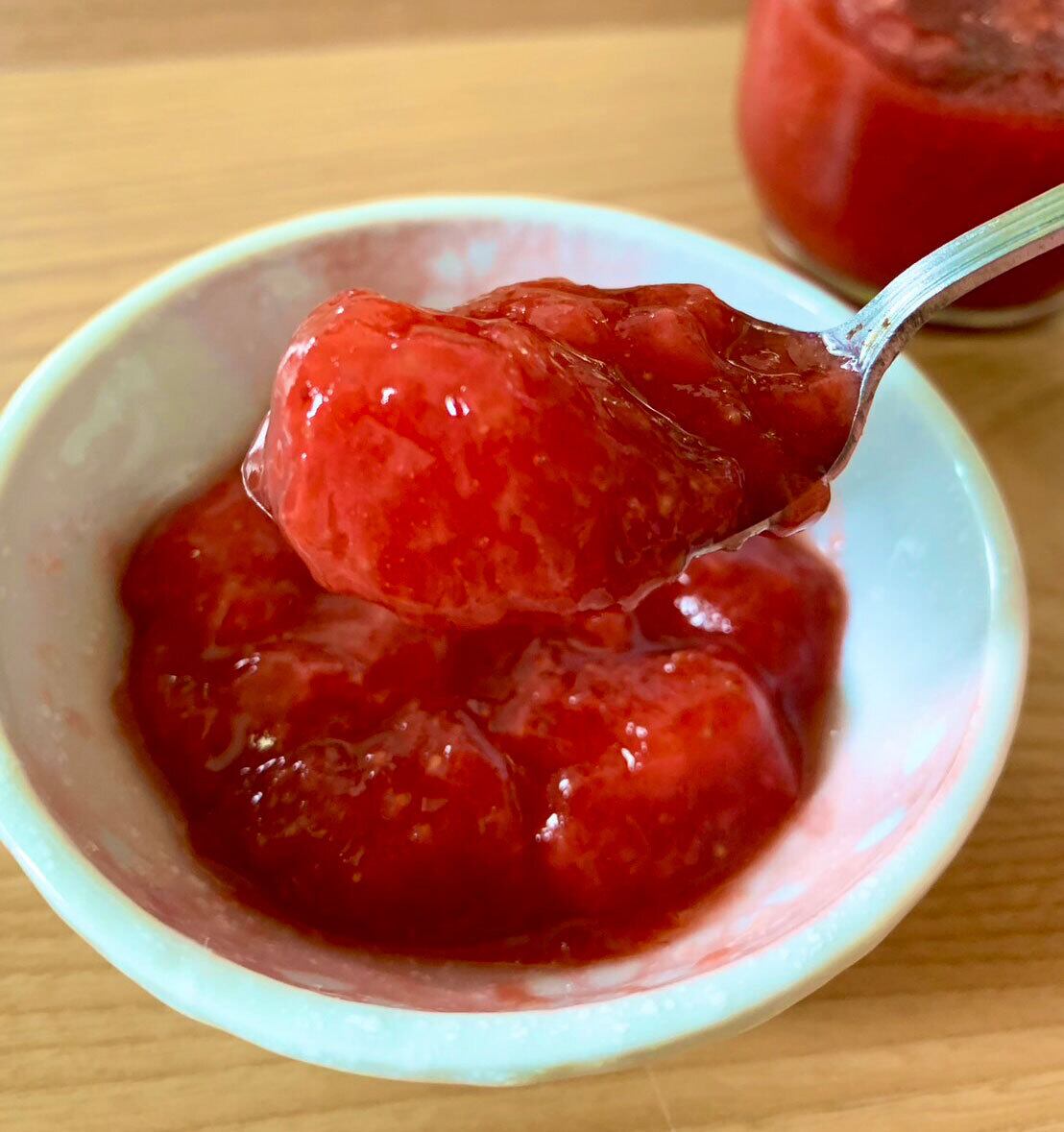 原材料は、厳選された苺と、自然な甘みを引き出すきび砂糖のみ。きび砂糖の使用量を抑え、苺本来の風味を最大限に引き立てています。